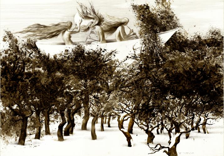 Ink on paper, mixed technique. 59x86cm